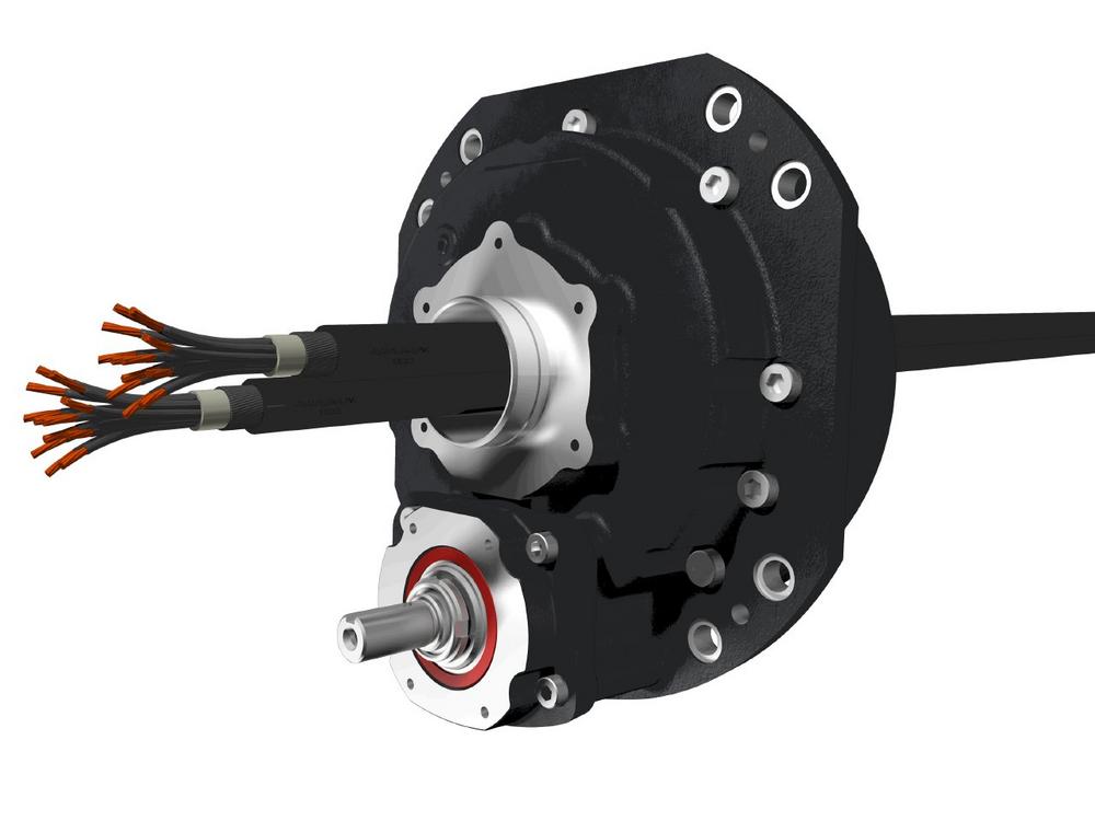 Nabtesco bietet die RD-Serie sowohl mit Vollwelle (RD_-E) als auch mit Hohlwelle (RD_-C) an. Die großzügig dimensionierte Hohlwelle ermöglicht es, Kabel und Schläuche – zum Beispiel Daten- und Versorgungsleitungen, Laserstrahlen sowie Antriebswellen – einfach und platzsparend durch die Mitte des Zykloidgetriebes hindurchzuführen. Sie bleibt nicht starr, sondern dreht konstruktionsbedingt mit der Abtriebsdrehzahl mit. Dies hat den Vorteil, dass über einen Geber an der Hohlwelle die Position der Antriebswelle direkt ermittelt werden kann.