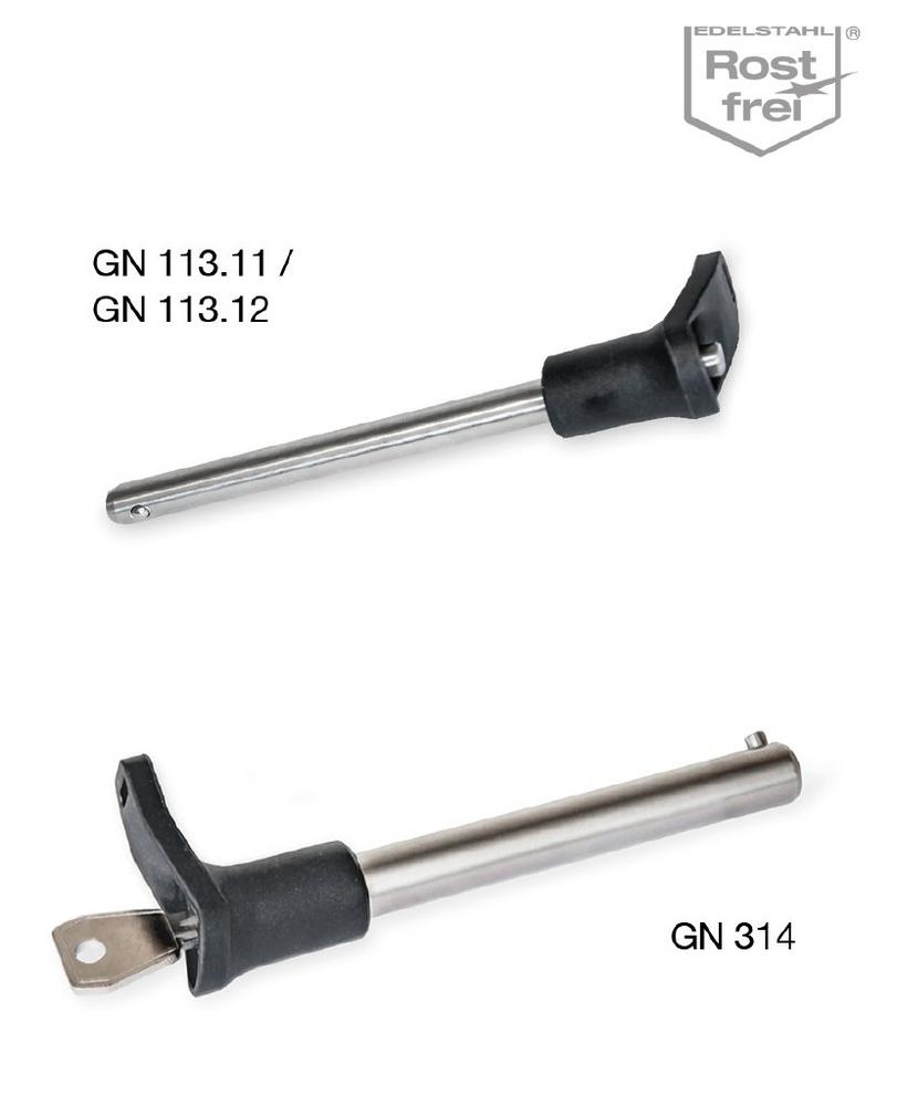 Auf diesen Knopf verzichtet der aktuellste Zuwachs der Steckbolzen-Familie, der Typ GN 314. Dafür übernimmt er den einteiligen Griff und integriert ein für bestimmte Anwendungen extrem wichtiges Feature: Er lässt sich abschließen.