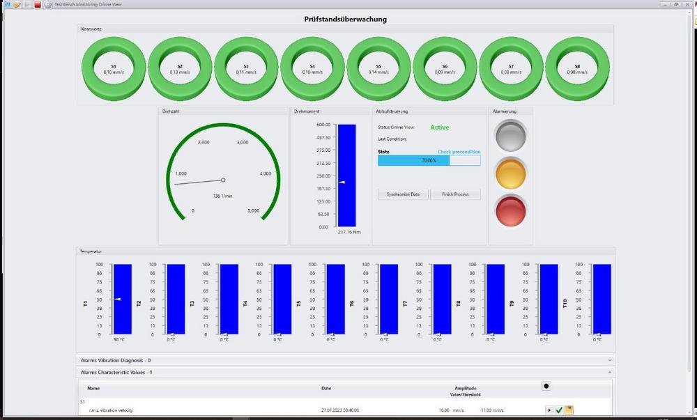 Ein neu hinzugekommenes Aufgabengebiet ist nun die Prüfstandsüberwachung von Antrieben. Konkret geht es darum, für gebrauchte Getriebe, die regelmäßig instandgesetzt werden, eine Condition-Monitoring-Lebensakte zu erstellen. Hier ist das Ziel der Instandsetzung explizit nicht, den Neuzustand eines Getriebes wiederherzustellen. Vielmehr geht es darum, diese Antriebe für einen klar abgrenzbaren Einsatzfall und Einsatzzeitraum zu ertüchtigen. Dazu benötigt man einen Mechanismus, der es ermöglicht, bestimmte Vorschädigungen, die genau genommen zu einem Alarm führen würden, als „akzeptiert“ zu deklarieren. Das gilt dann natürlich immer nur für einen konkreten Prüfling und wird dokumentiert.